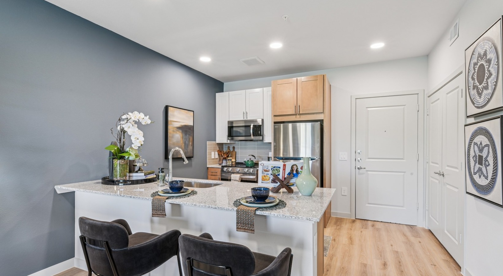 Enjoy the sunshine with a dip in our pool, or play fetch with your best friend in one of our two onsite dog parks. Show off your cooking skills in your own gourmet kitchen, then enjoy a glass of wine on your patio or balcony. Whether you’re hanging with friends or enjoying some quality time, The Ridge at Lakeline has the space for you. Browse our photos below and imagine your new life here.